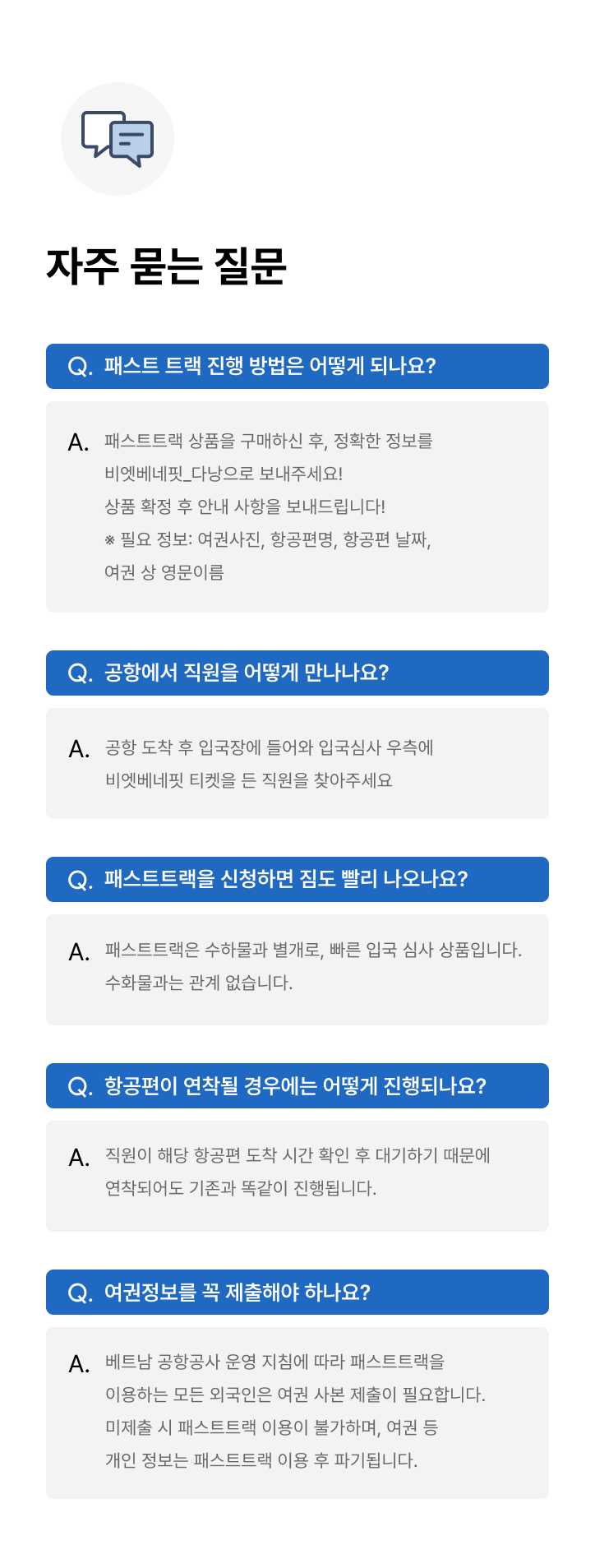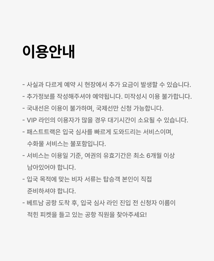 다낭 도착하자마자 기다림없이 빠르게 슉슉슉 지나가니 기분이 좋았습니다~애기들이랑 같이 갈때나 성수기때는 필수로 이용하시면 좋을것 같아요~~다음여행에 또 이용할거에요ㅋㅋ가격도 다른데보다 저렴하네요!