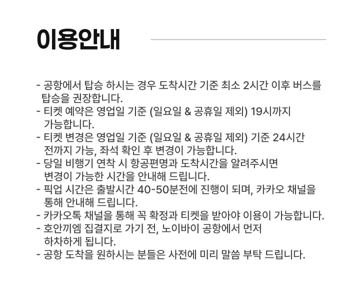 - 원활한 공항 출발을 위해 30분 전에 미리 도착해 주세요.