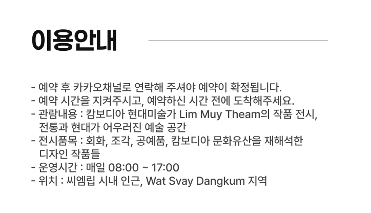 캄보디아의 예술적 감성을 만나는 곳 – 티엄스 갤러리로 초대합니다.