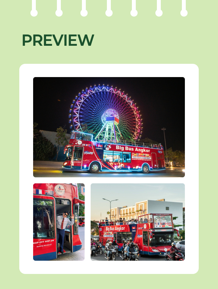 빨간색 2층 버스를 타고, 씨엠립 시내부터 앙코르 유적지까지 편하게, 자유롭게 이동할 수 있는 빅버스 앙코르!