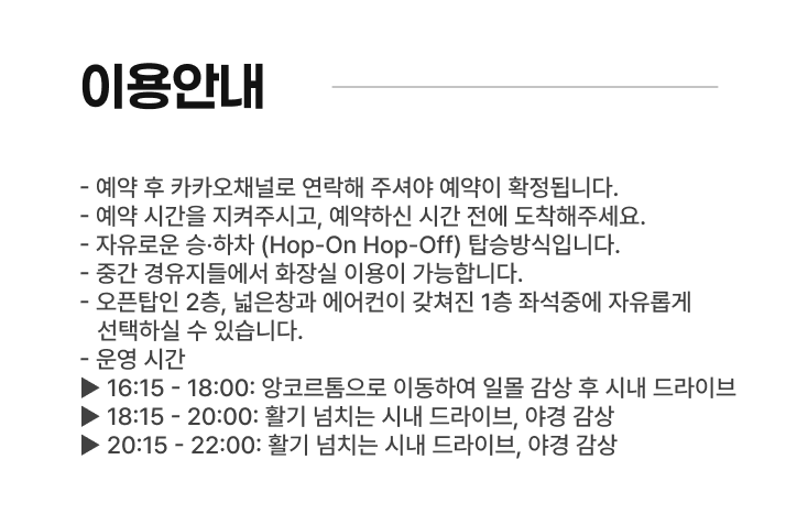 ▶ 사진 찍기 좋은 오픈탑 좌석 또는 시원한 실내석 중 선택 가능!