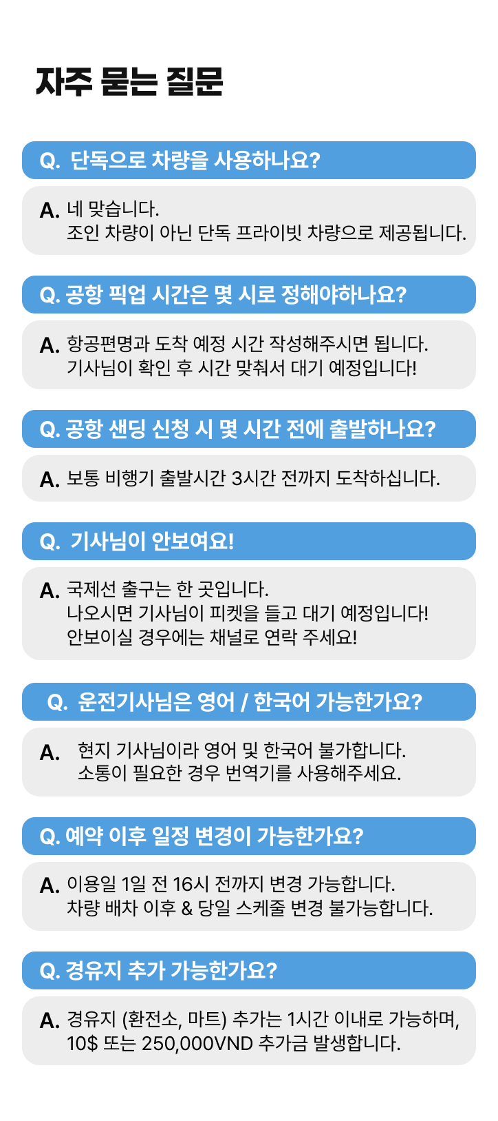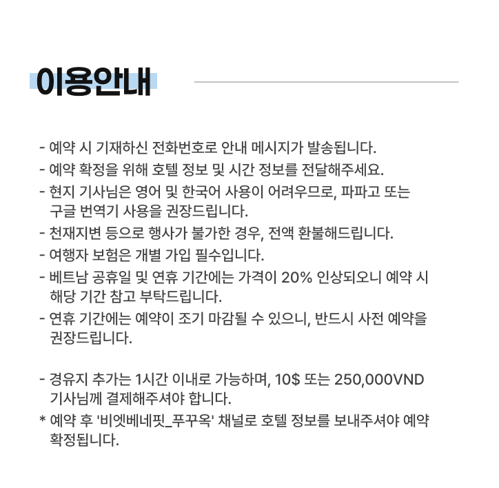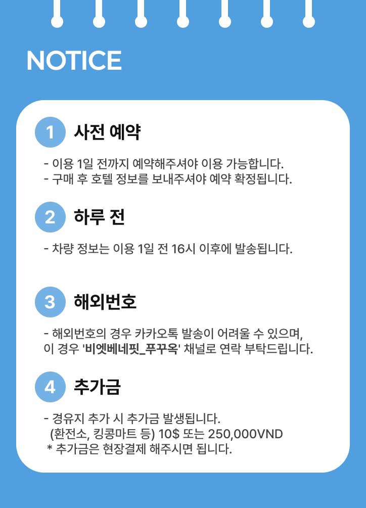 푸꾸옥 어디든 안전하고 자유롭게 편도로 이용 가능한 픽업 / 샌딩 서비스 !