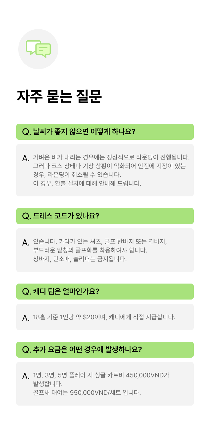 - 결제 완료 후 골프장에 예약이 실시간으로 진행되며, 예약 확정까지 시간이 소요될 수 있습니다.