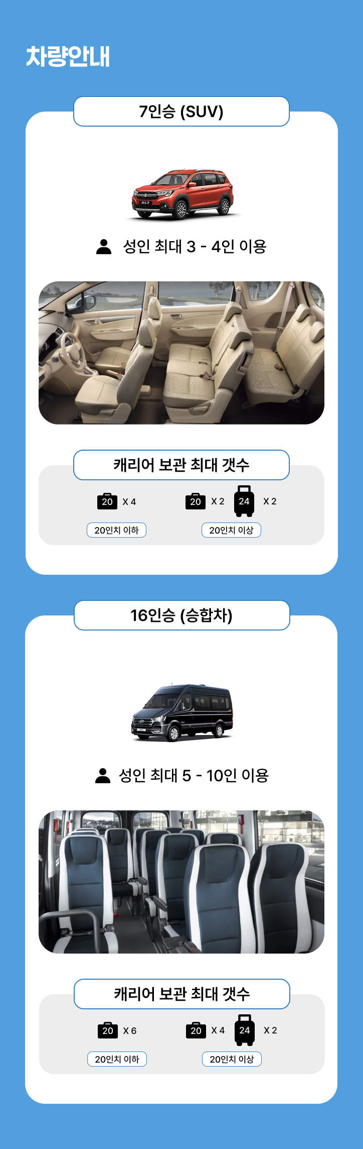 7인승: 유아 제외 최대 4명 탑승