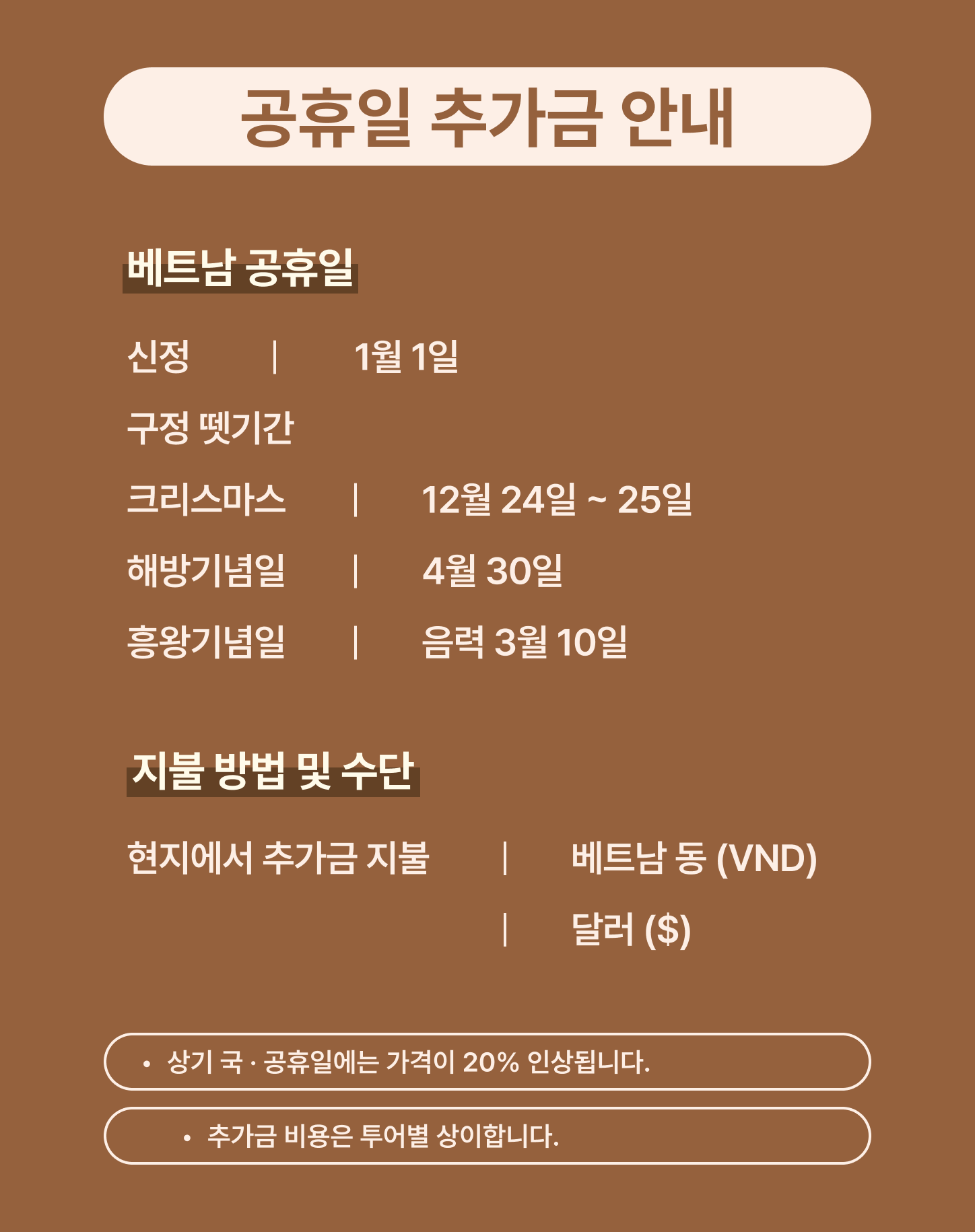 베트남 전통 요리 및 세계 각국 요리 제공