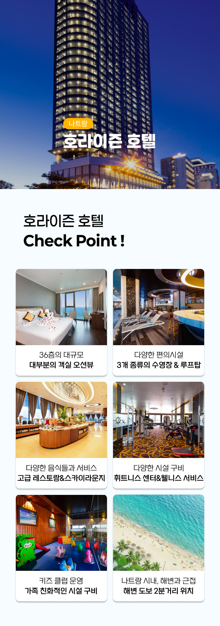 - 호라이즌 호텔은 나트랑 바닷가 바로 앞에 위치한 36층 규모의 5성급 호텔입니다.