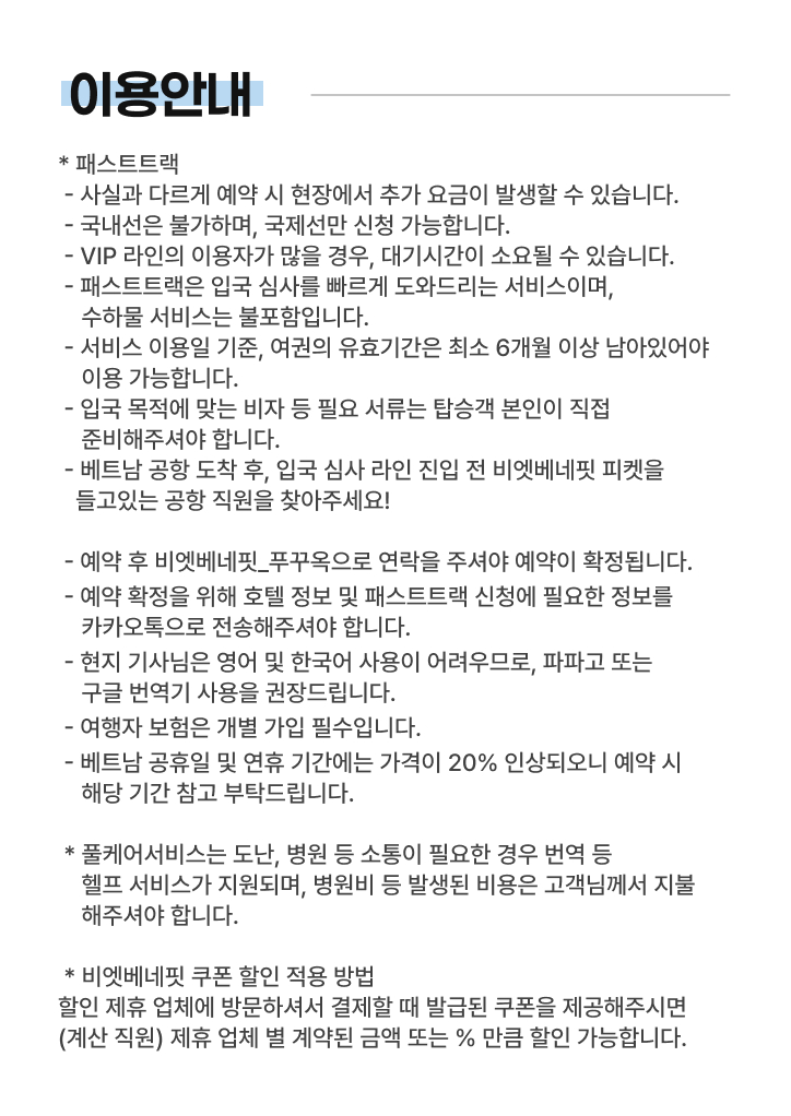 푸꾸옥 여행하면서 공항에서부터 패스트트랙과 픽업 서비스를 이용했는데,