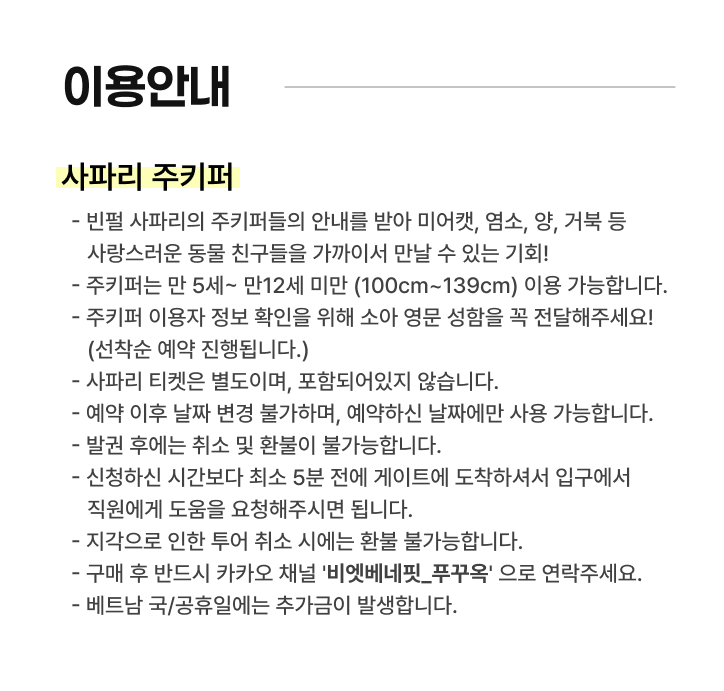 빈사파리 아동 주키퍼 체험권 📢