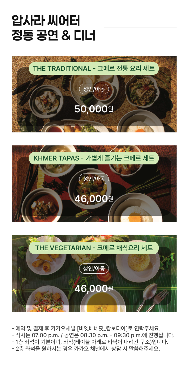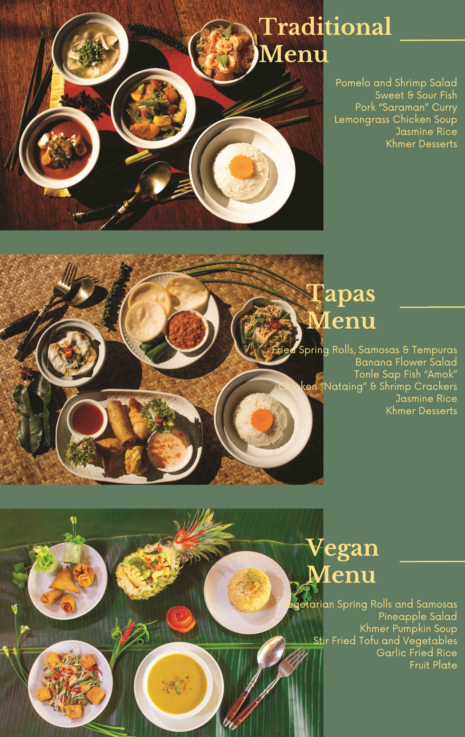 ✔ 식사 : 크메르 세트식 3종류- THE TRADITIONAL / KHMER TAPAS / THE VEGETARIAN