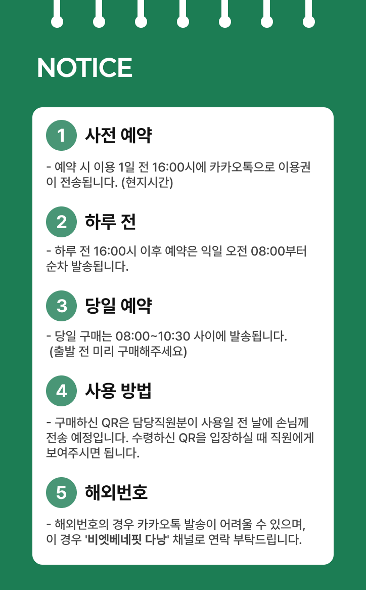 - 운영 시간은 현지 상황(천재지변등)에 따라 변동 될 수 있습니다.
