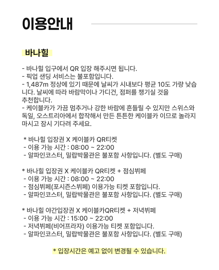 - 케이블카 운행 시간: 오전 8시 ~ 오후 10시