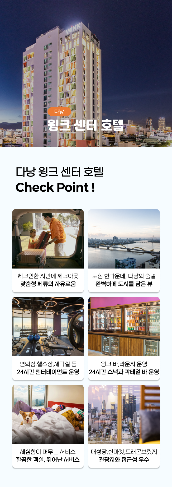 🔸윙크 호텔 인근의 인기 명소로는 인도차이나 리버사이드 몰, 송한 다리, 다낭 사랑의 자물쇠 다리 등이 있습니다
