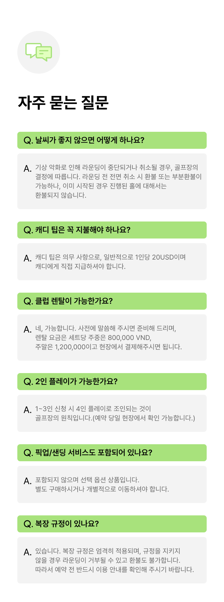 - 결제 완료 후 골프장에 예약이 실시간으로 진행되며, 예약 확정까지 시간이 소요될 수 있습니다.