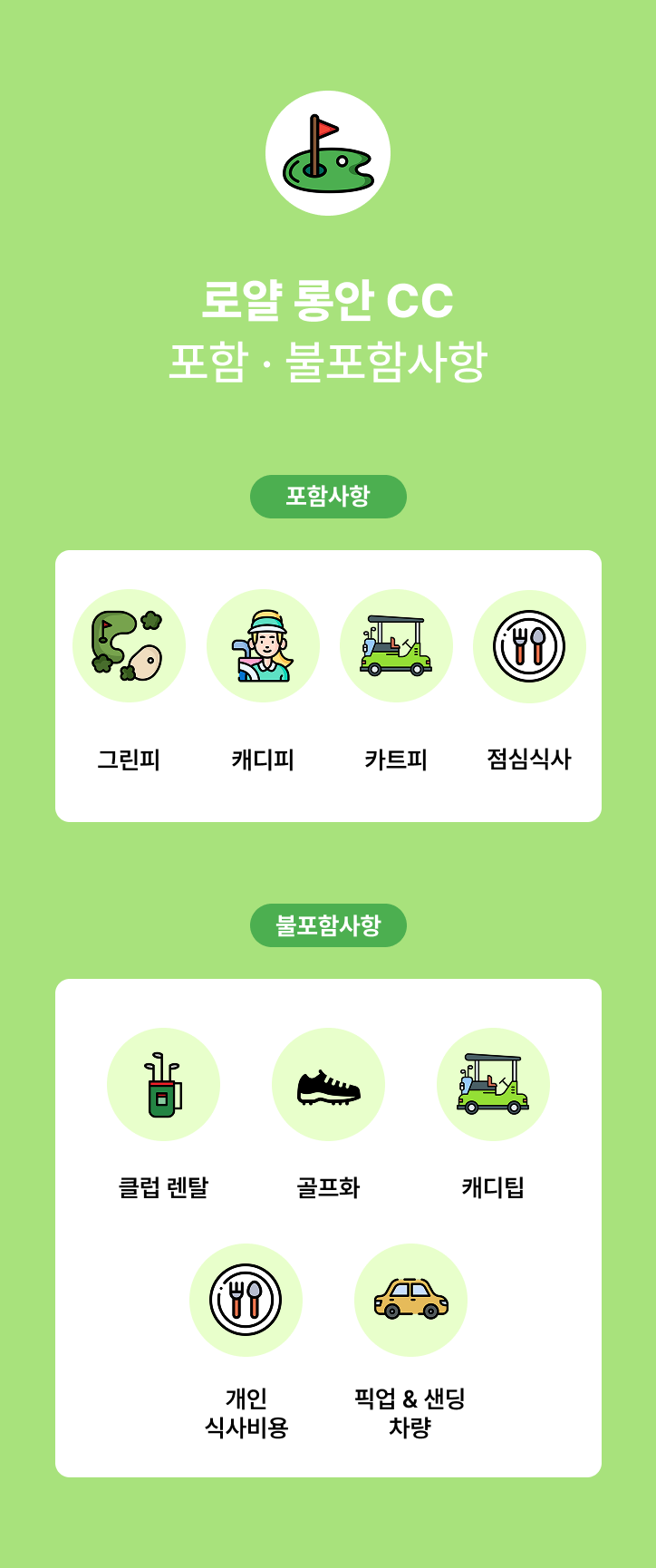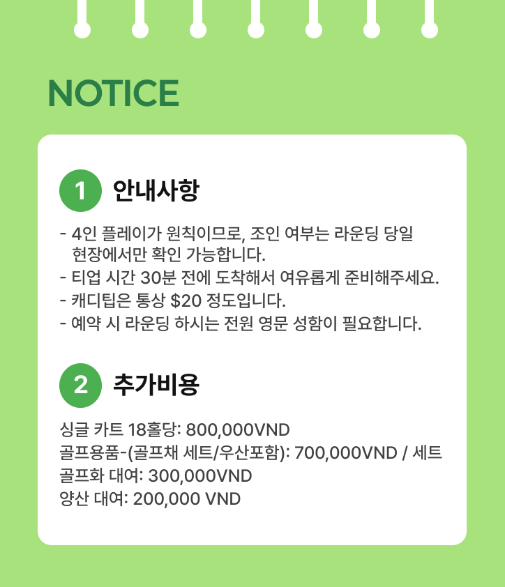 - 호텔 ↔ 골프장 왕복 차량은 미포함으로 별도 구매해주셔야 합니다.