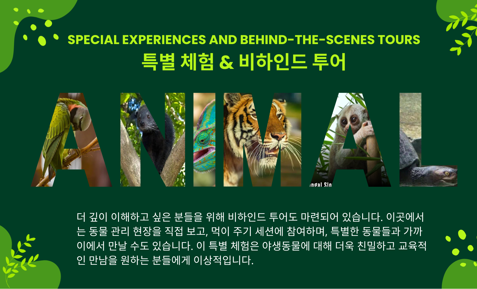 ✦ 와일드라이프 존 : 희귀 동물과의 만남, 생태계 보존의 소중함을 느낄 수 있습니다.