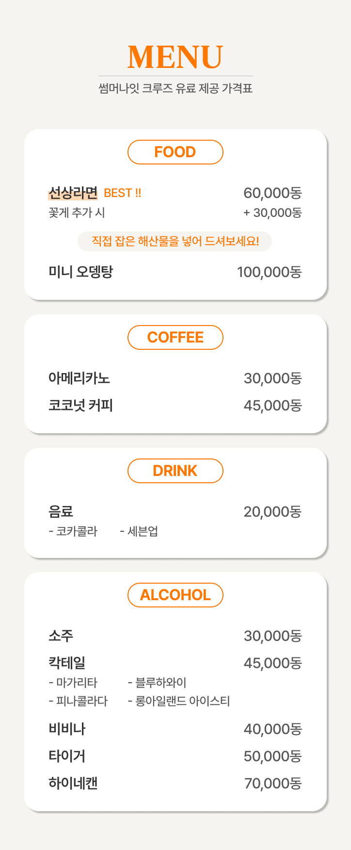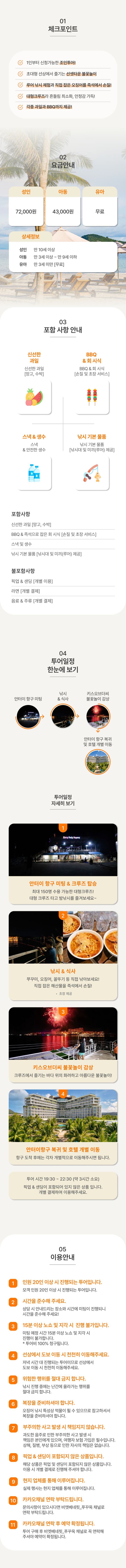 BBQ와 열대과일, 밤바다의 불꽃놀이까지 즐겨보세요!