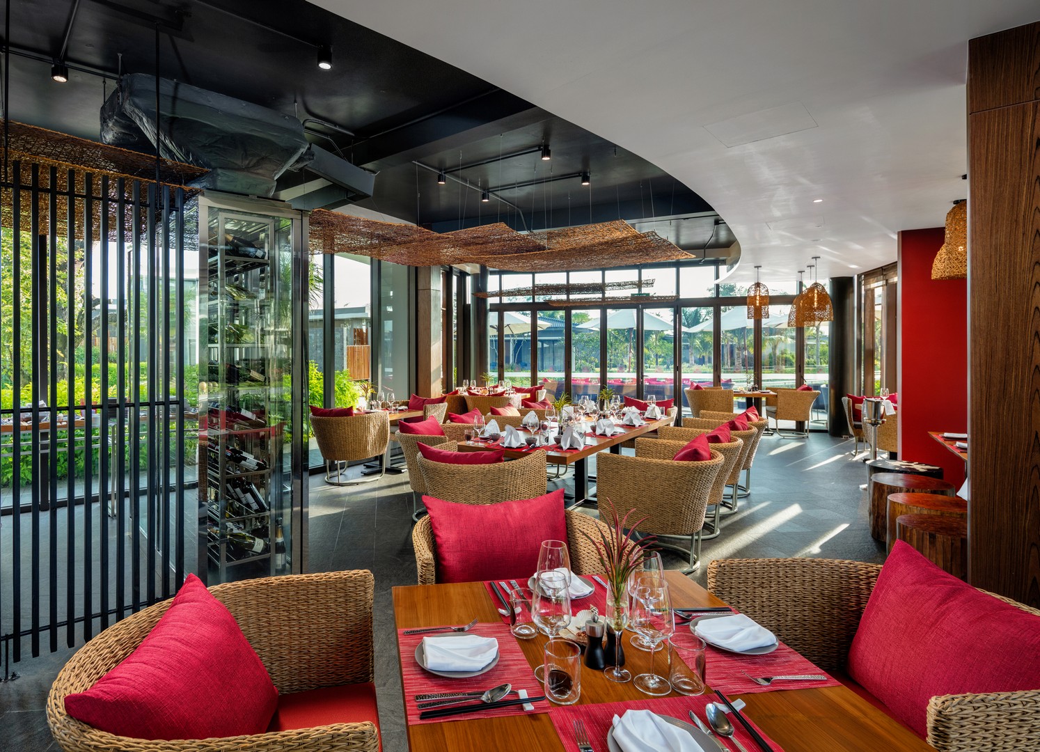 Novotel Phu Quoc Resort의 라운지 바는 리조트 옆에 위치한 세련되고 아늑한 공간입니다.