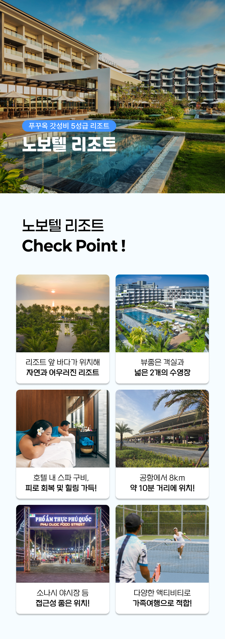 푸꾸옥 아일랜드의 해변에 위치한 노보텔 푸꾸옥 리조트에 머무실 경우 차로 15분 정도 이동하면 푸꾸옥 즈엉동 야시장 및 푸꾸옥 비치에 가실 수 있습니다.