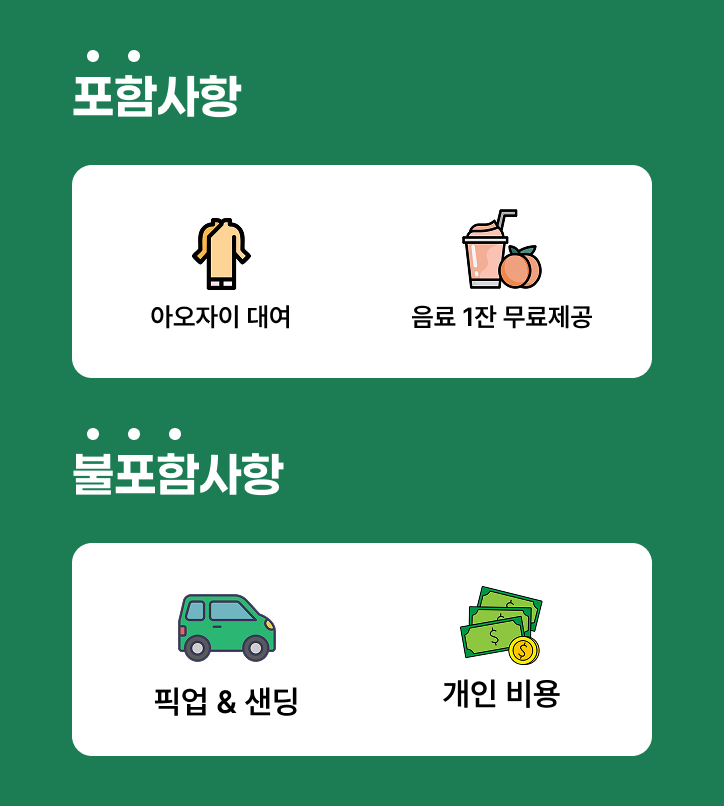 • 아오자이 훼손, 오염, 분실 시 추가 비용이 청구될 수 있습니다.