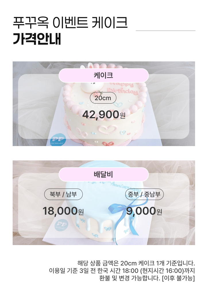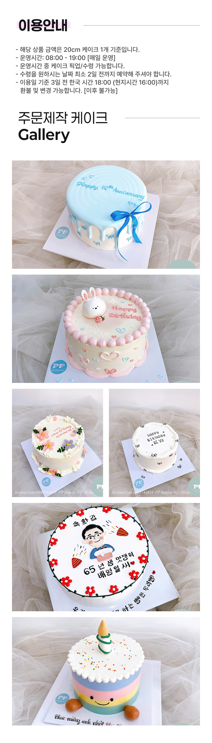 여행 중 생일도, 기념일도 그냥 못 지나치지 🎉 푸꾸옥에서 만나는 맞춤 제작 케이크, 특별한 날은 더 특별하게 🍰 * 해당 상품은 수령일 2일 전까지 사전 예약 시 가능합니다. * 매일 08:00 ~ 19:00 수령 가능합니다.
